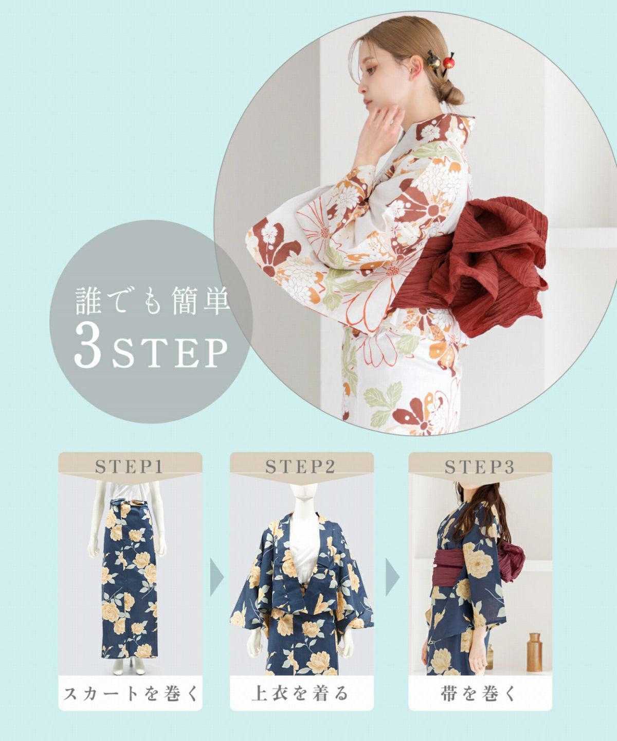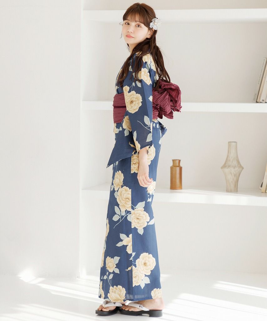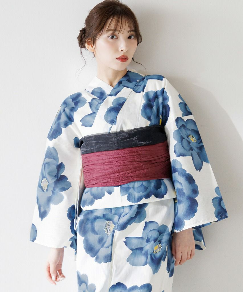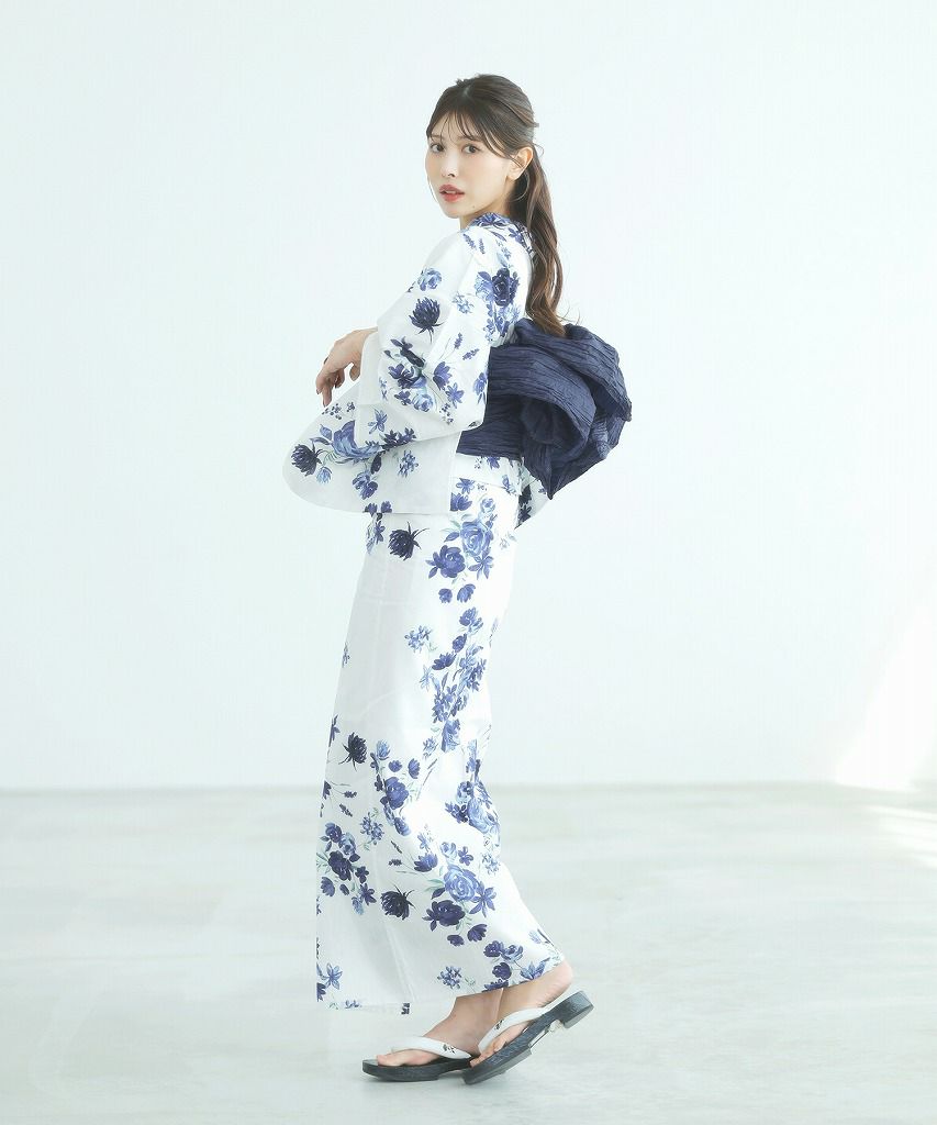 洋花の薔薇重ね 2025 セパレート浴衣3点セット(ゆかた・帯・着付け本)