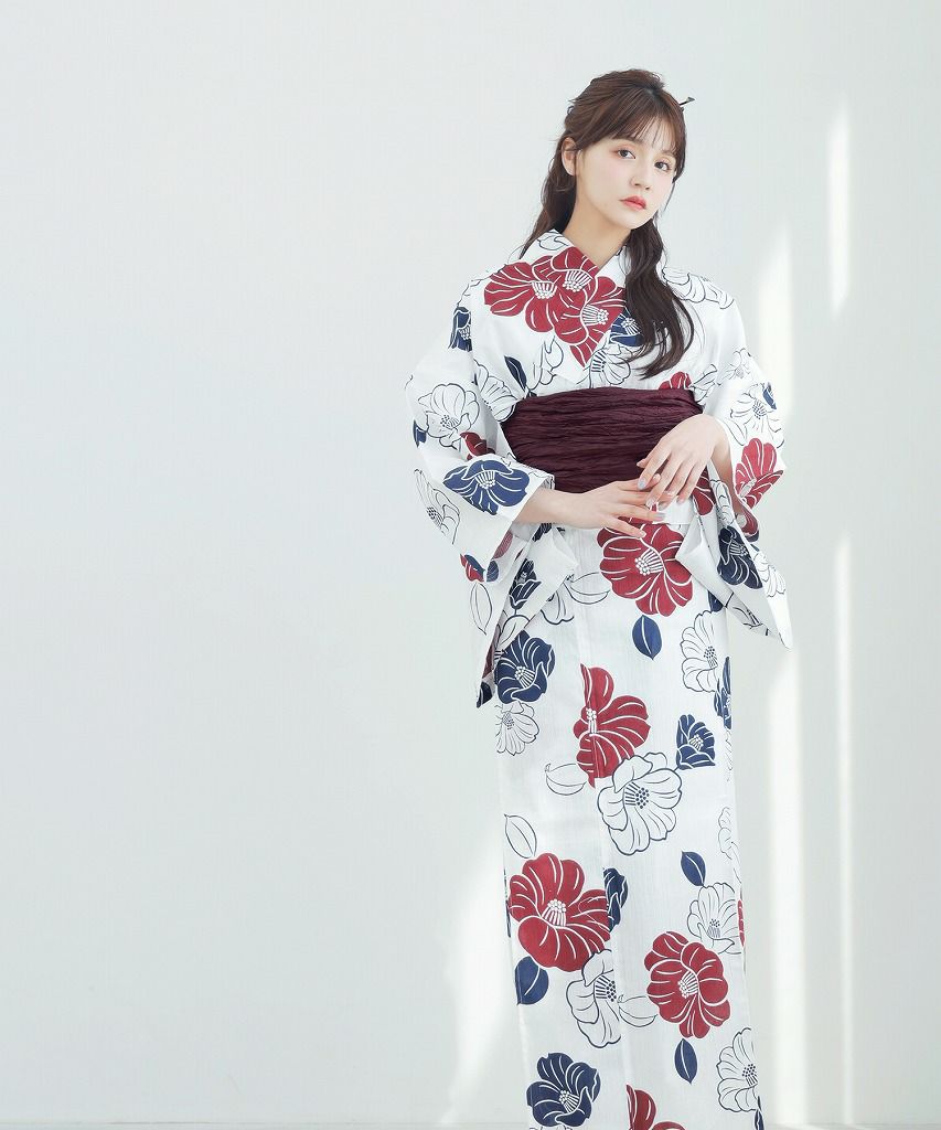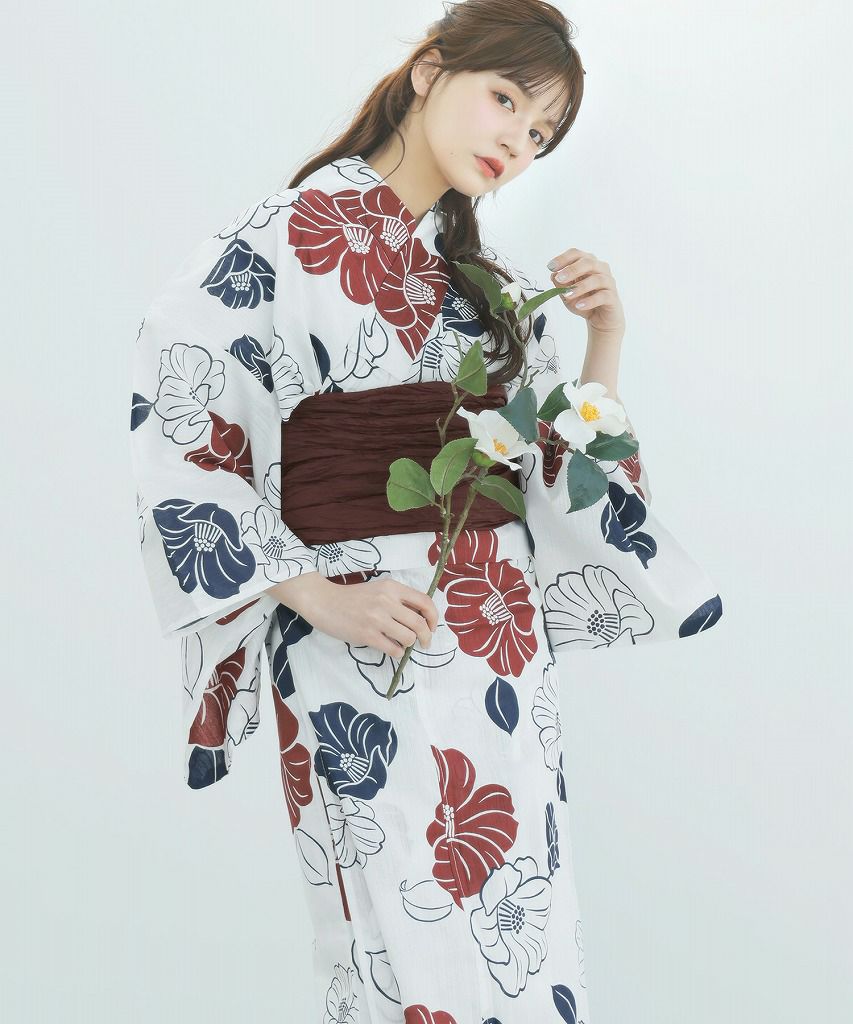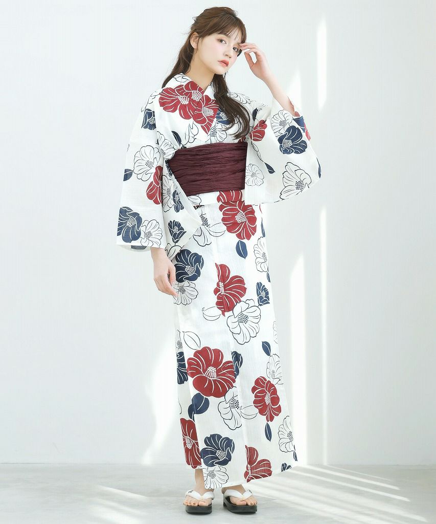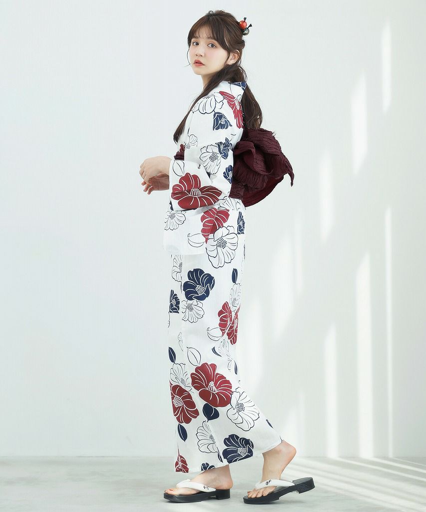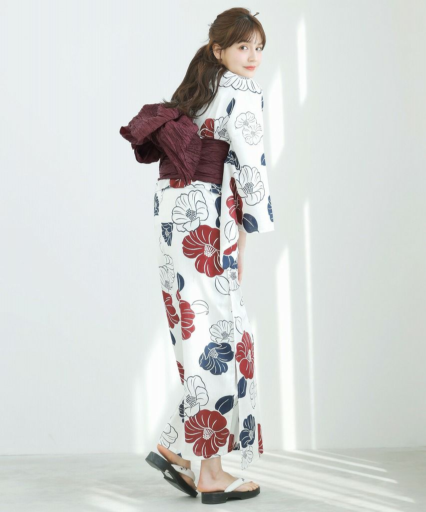 京の古典椿(茜) 2025 セパレート浴衣3点セット(ゆかた・帯・着付け本)
