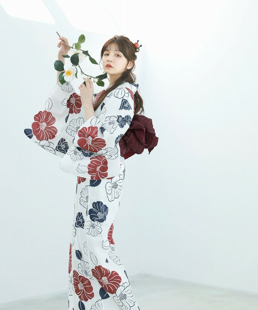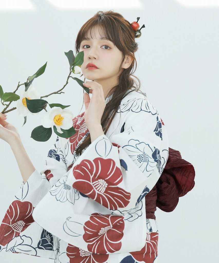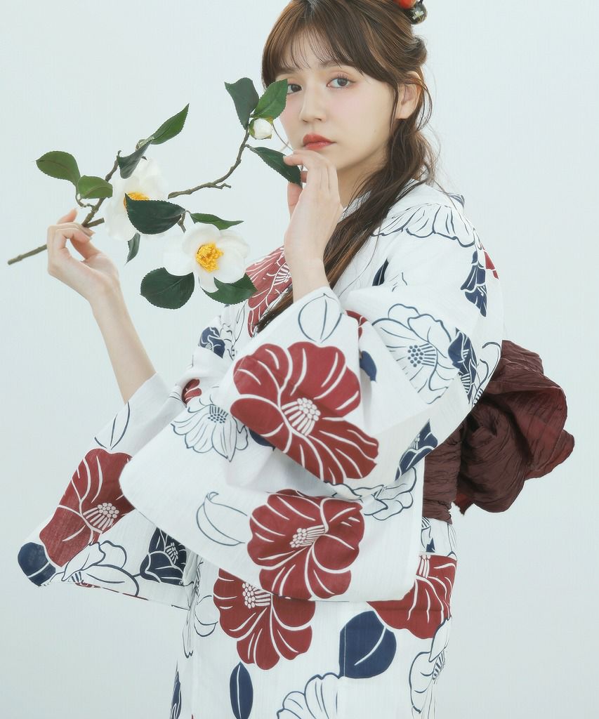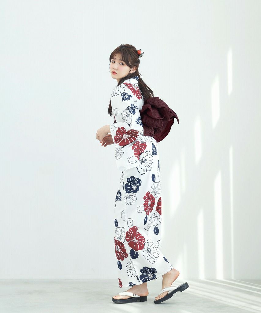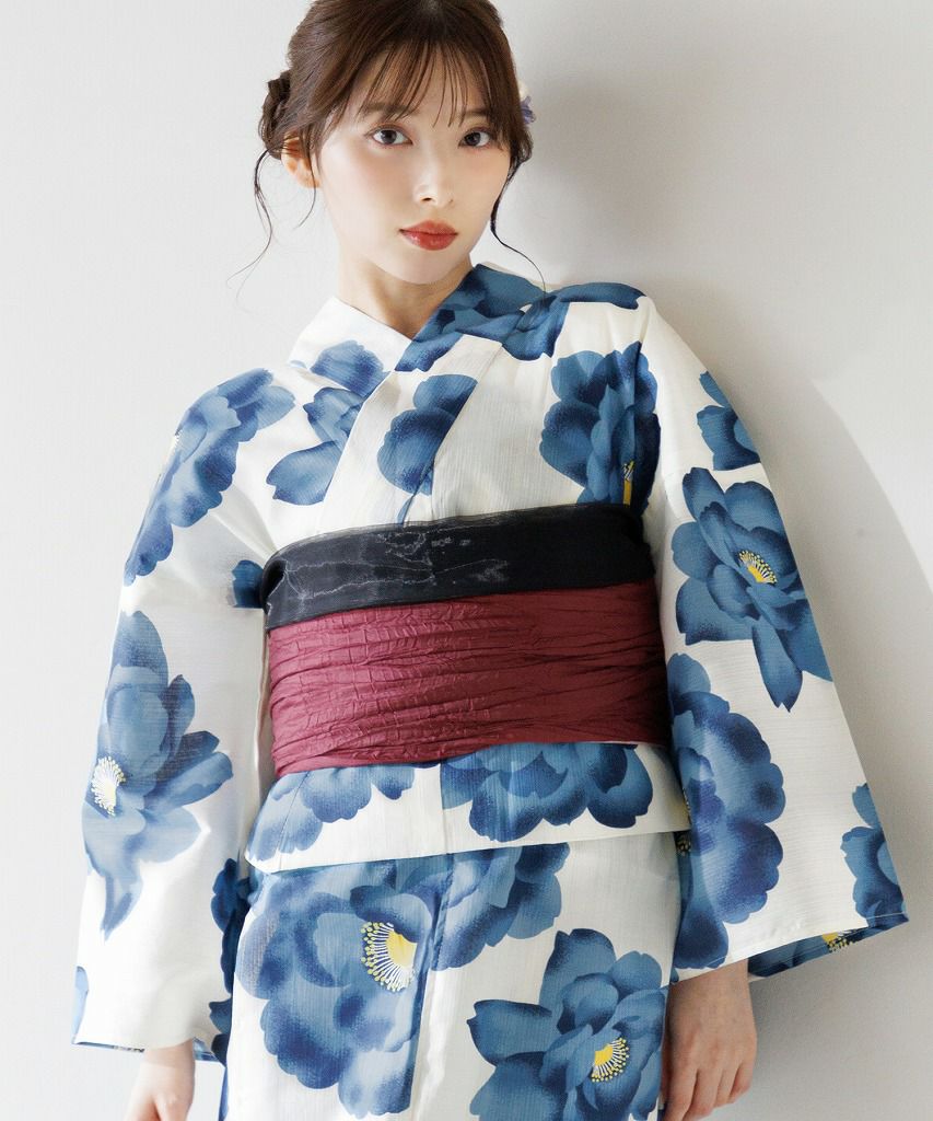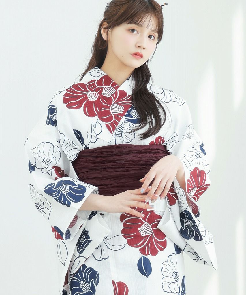 京の古典椿(茜) 2025 セパレート浴衣3点セット(ゆかた・帯・着付け本)