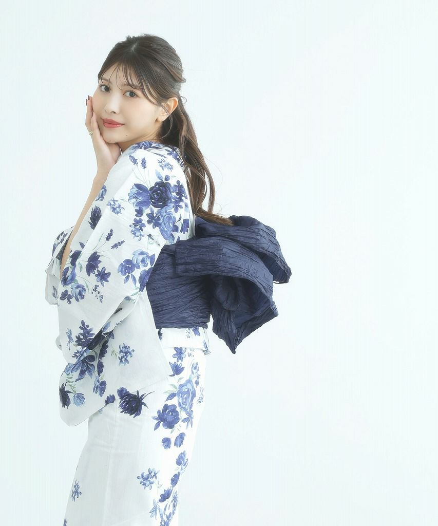 花紺青色の泡沫しらべ 2025 セパレート浴衣3点セット(ゆかた・帯・着付け本)