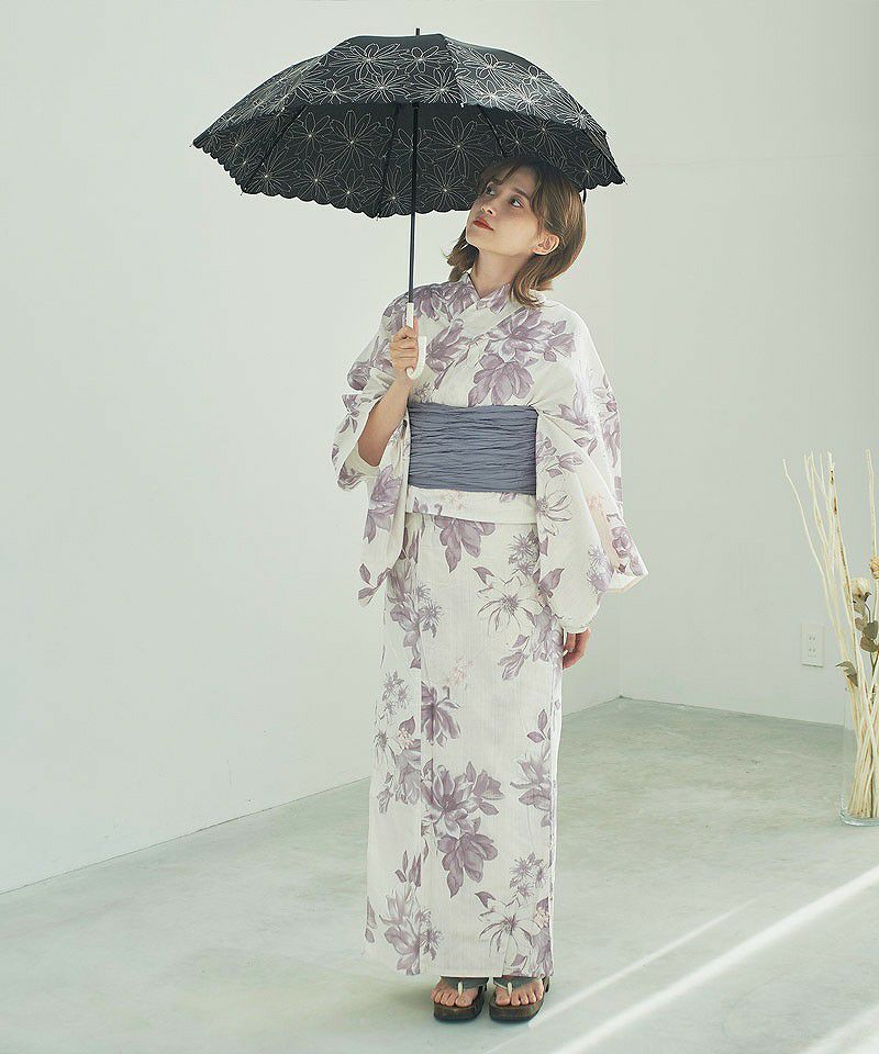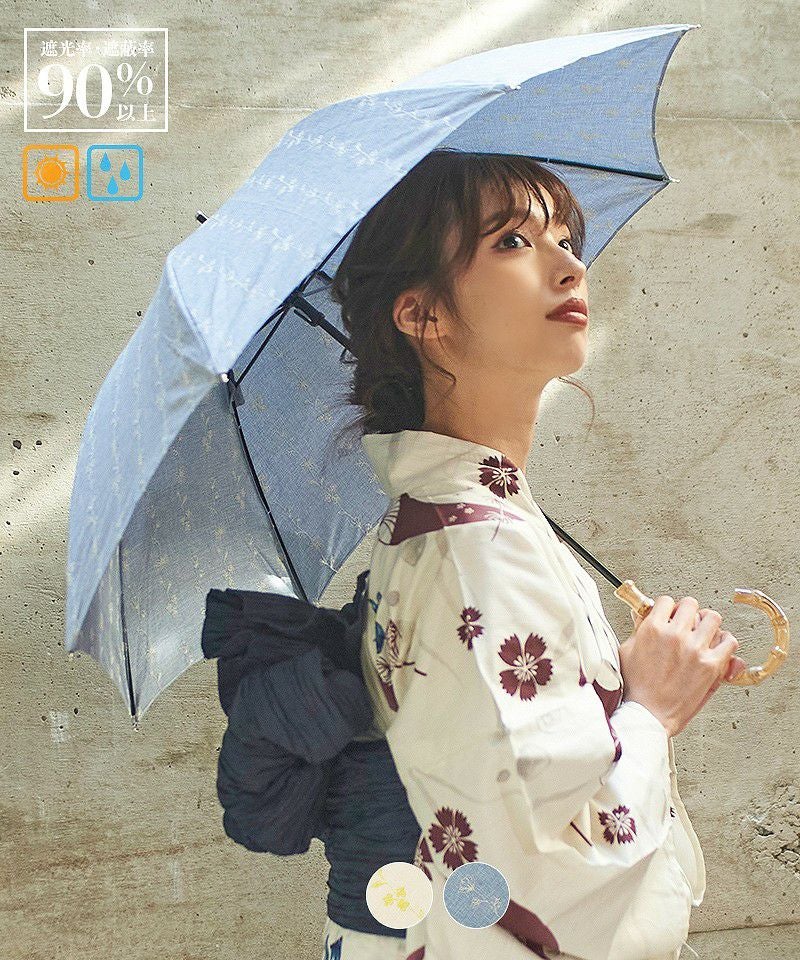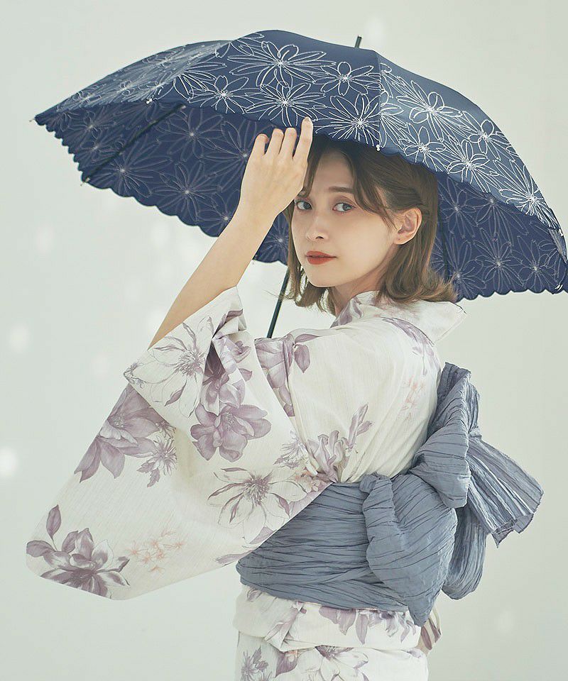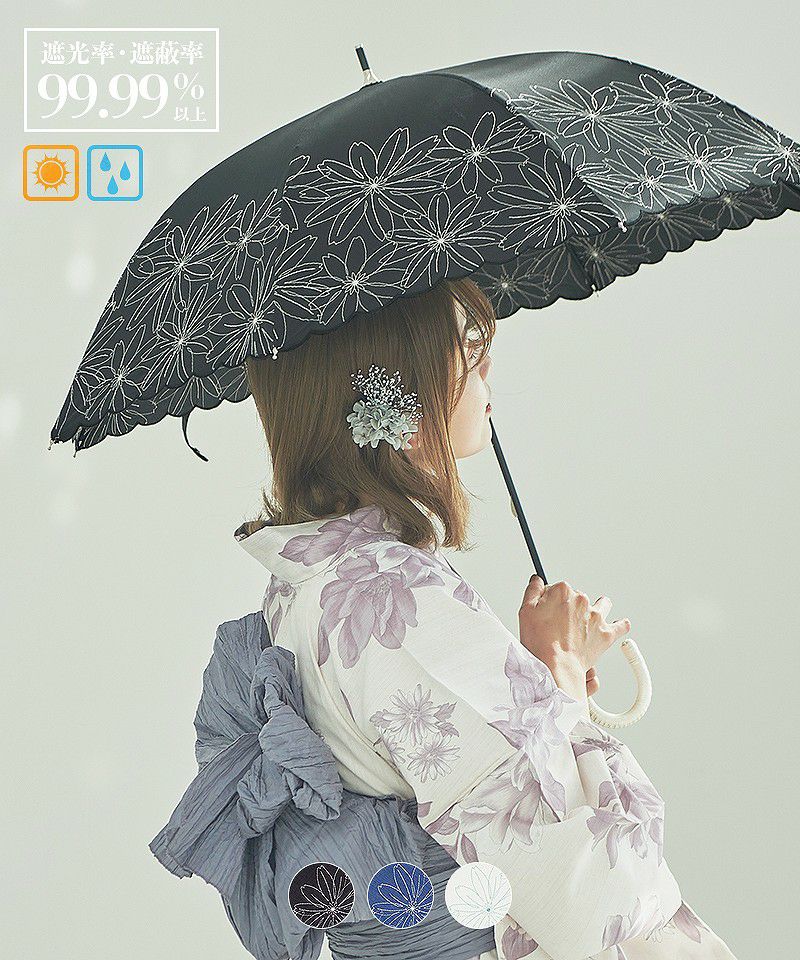 フラワーライン刺繍長傘/全2色 ≪雨晴兼用傘(日傘/雨傘)≫