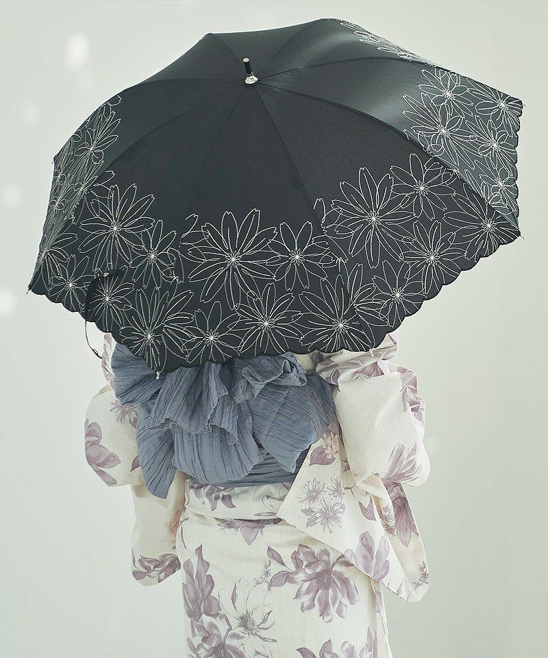 マーガレット刺繍長傘/全3色 ≪雨晴兼用傘(日傘/雨傘)≫