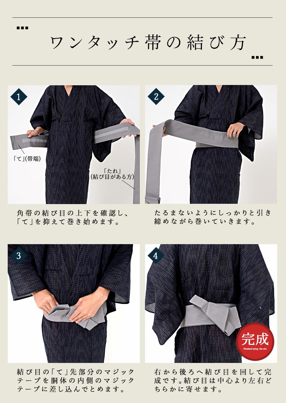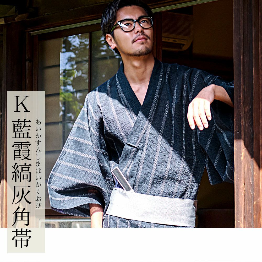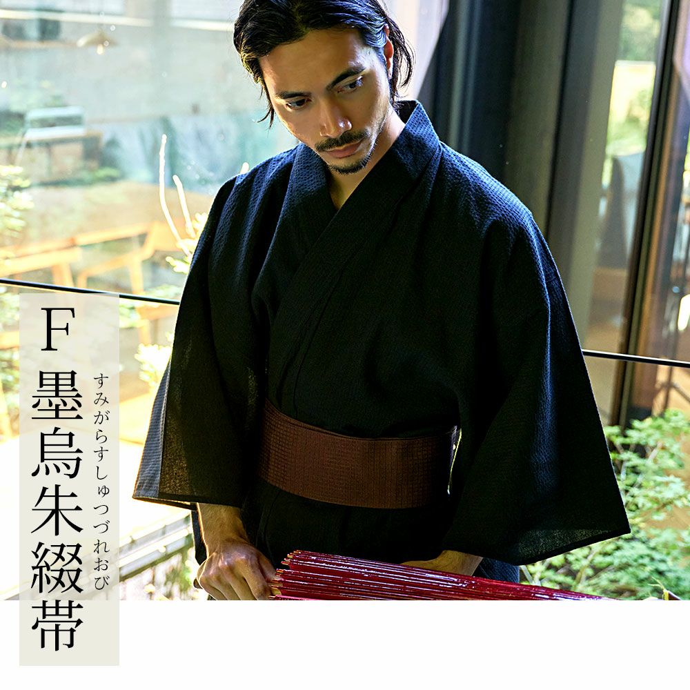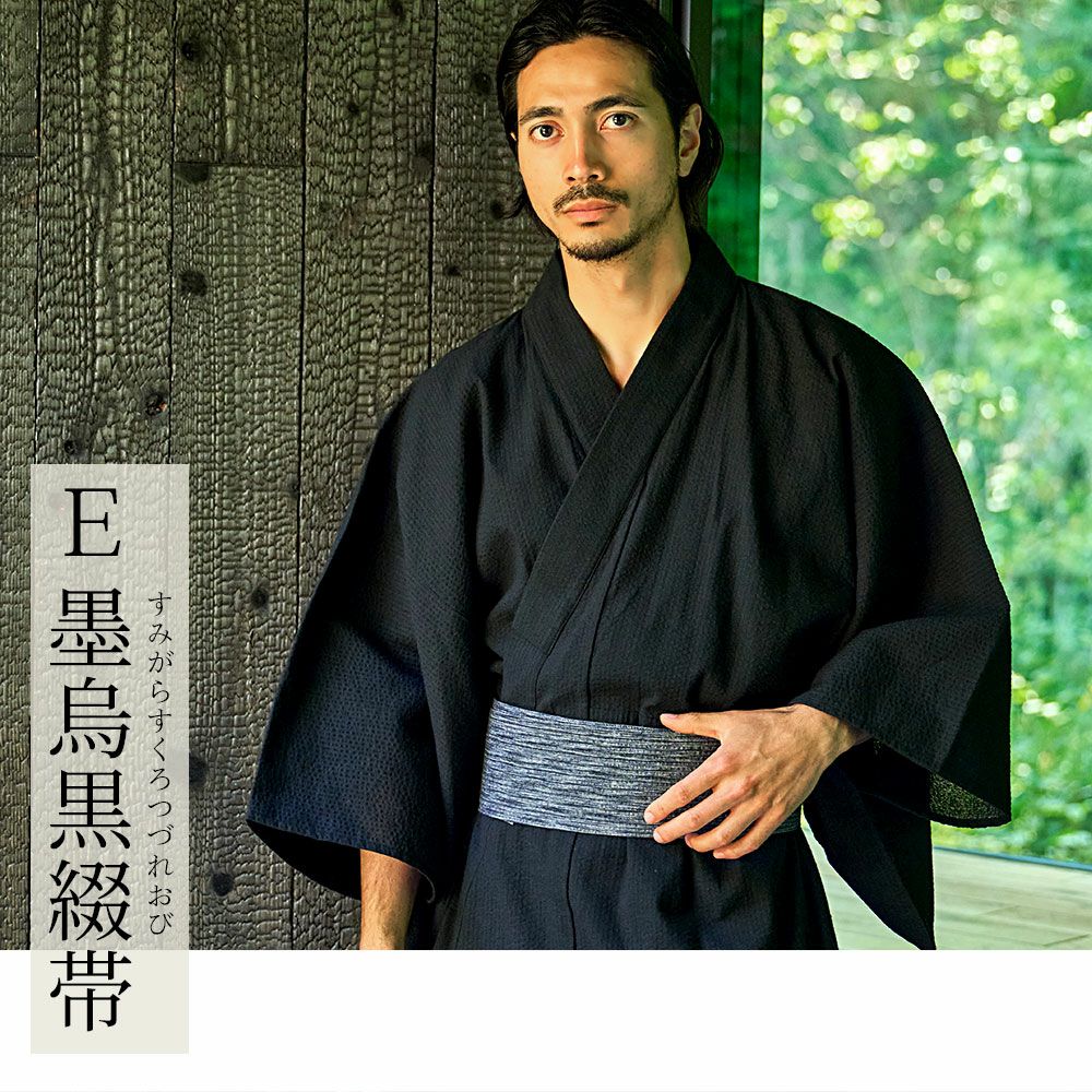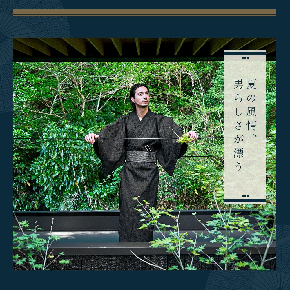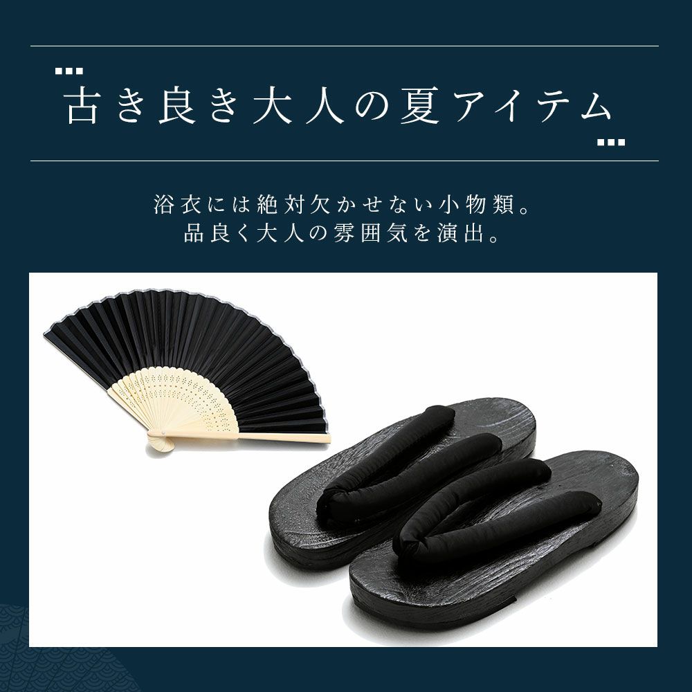 一人で着られる5点セット(浴衣+帯+腰紐+下駄+扇子)/全11色 紳士浴衣5点セット