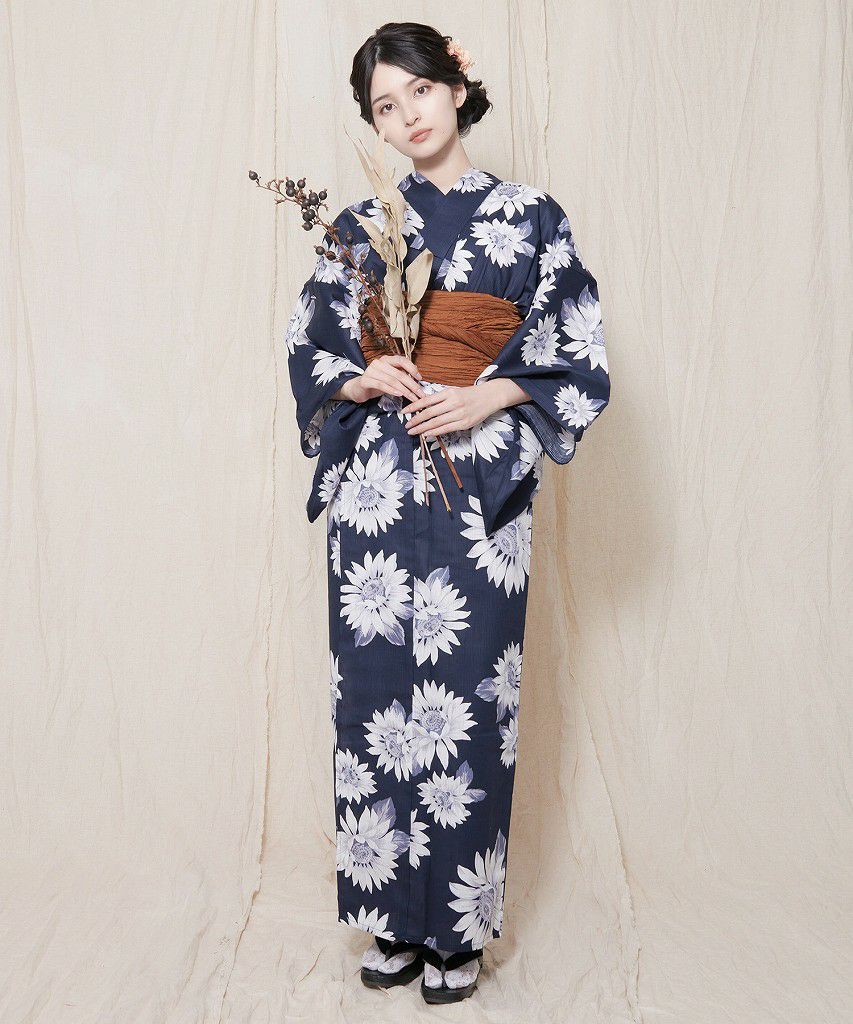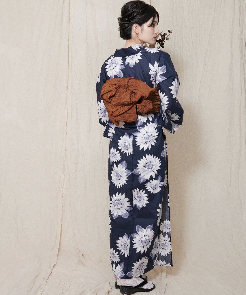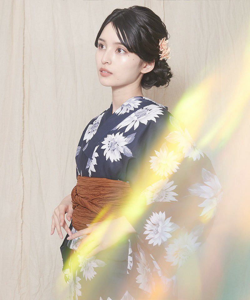 セパレート浴衣3点セット(ゆかた・帯・下駄) 夏色ひまわり