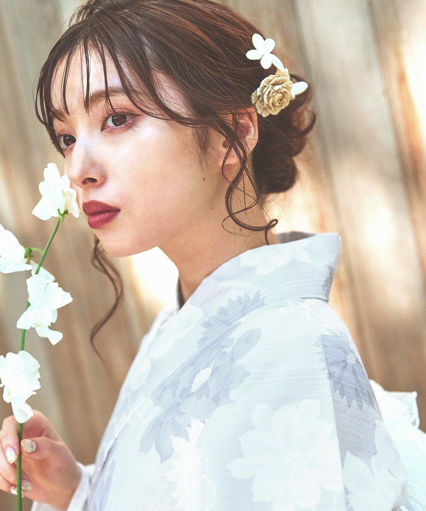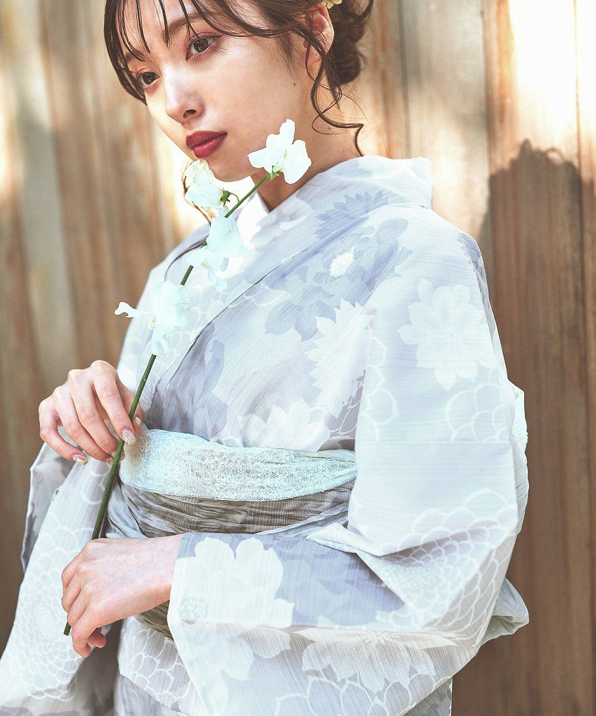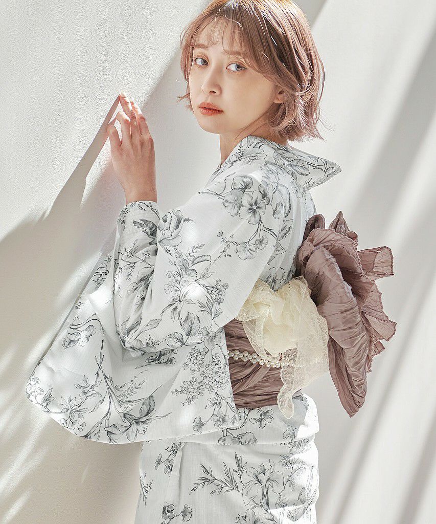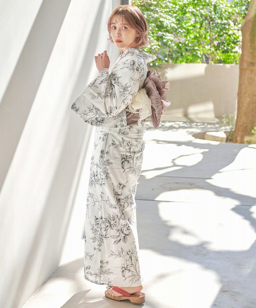 柚月のはんなり花しらべ 2025 浴衣5点セット(ゆかた・帯・下駄・着付けマニュアル・腰ひも)